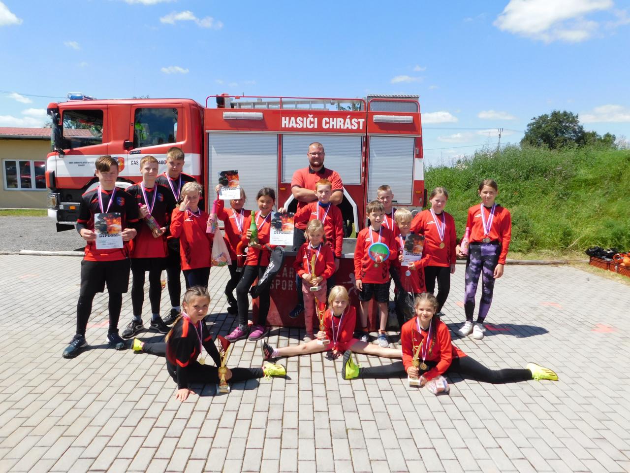 Kroužek mladých hasičů dosahuje příkladných výsledků při práci s mládeží a reprezentuje jak SDH Chrást, tak obec Chrást.